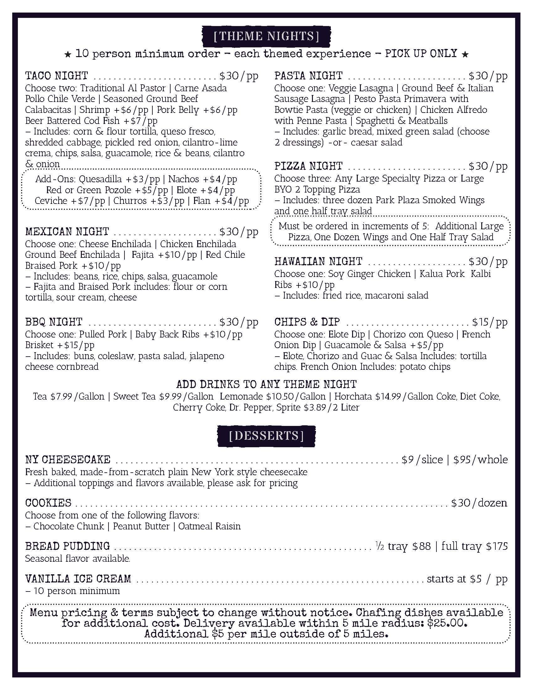 For an easy and exciting event check out our new themed catering menu featuring culinary delights from around the globe suited for all occasions. Six options now available by pre order.