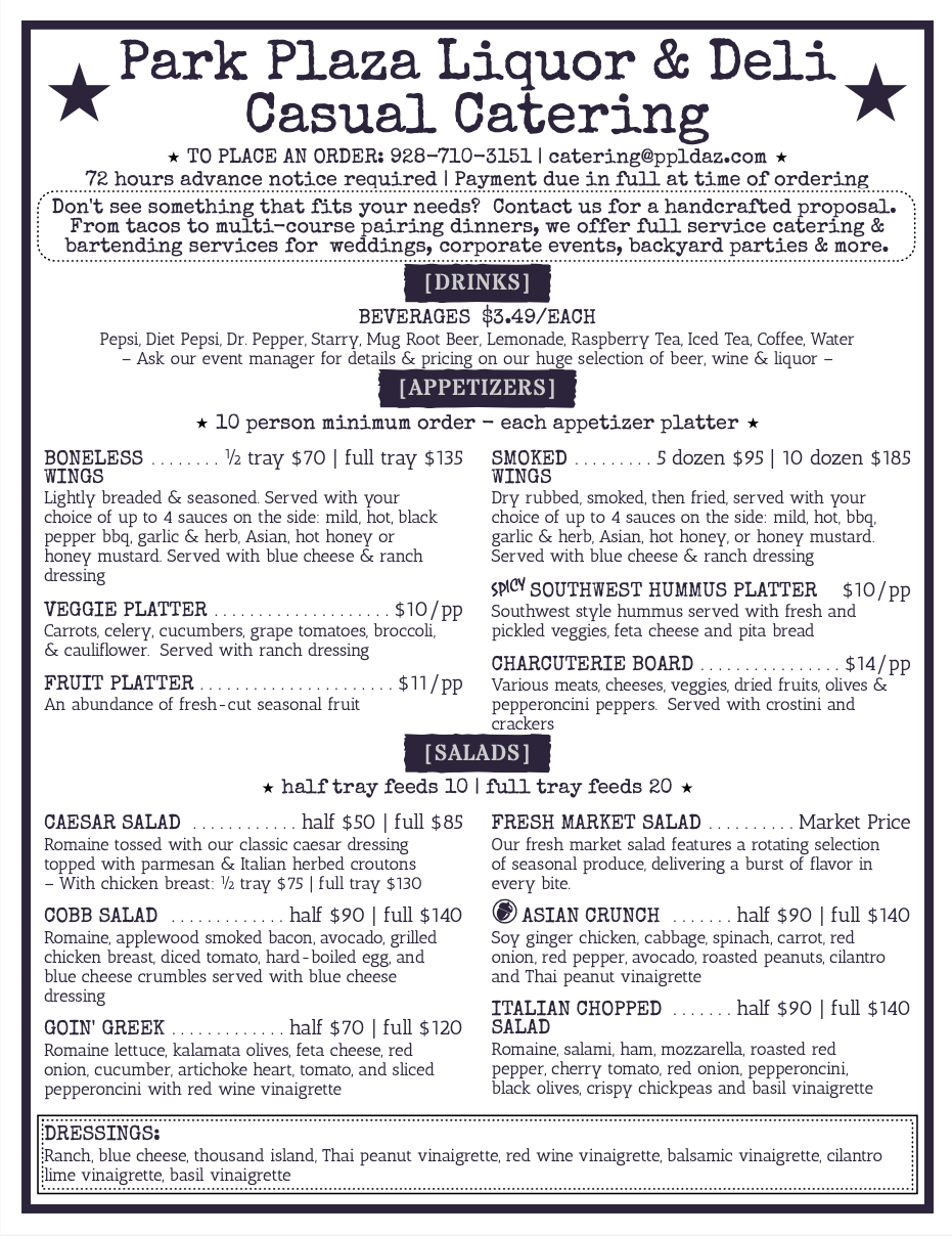 See some common questions and answers about our catering service below, or call us at (928) 710-3151