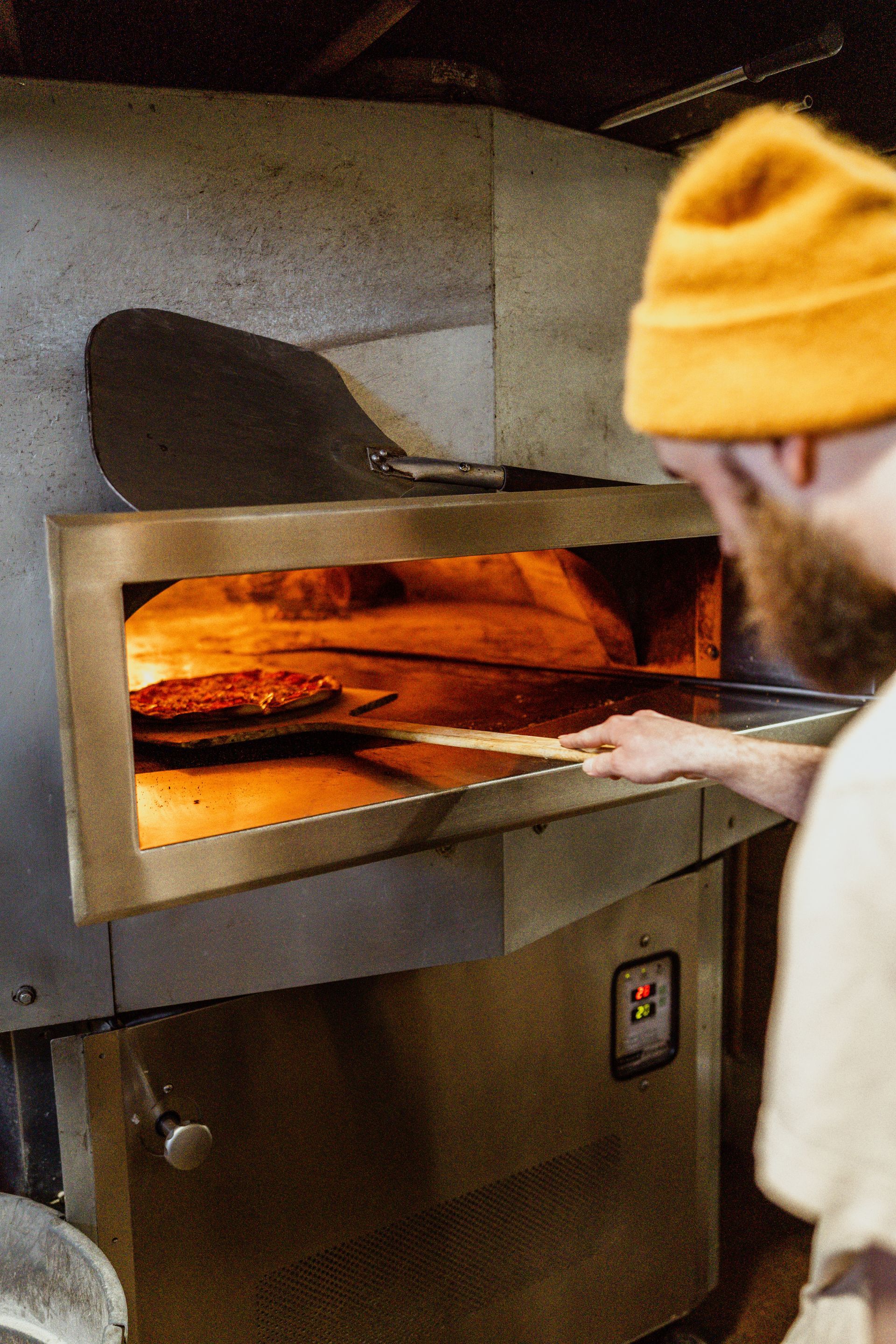 Our wood-fired pizza oven is stoked with local, sustainable wood, at a hot 700+ degrees. Our dough is made fresh daily with yeast that we cultivate on-site. Our fresh mozzarella is made daily on premise & our hand cut toppings create a pizza unlike any other.
